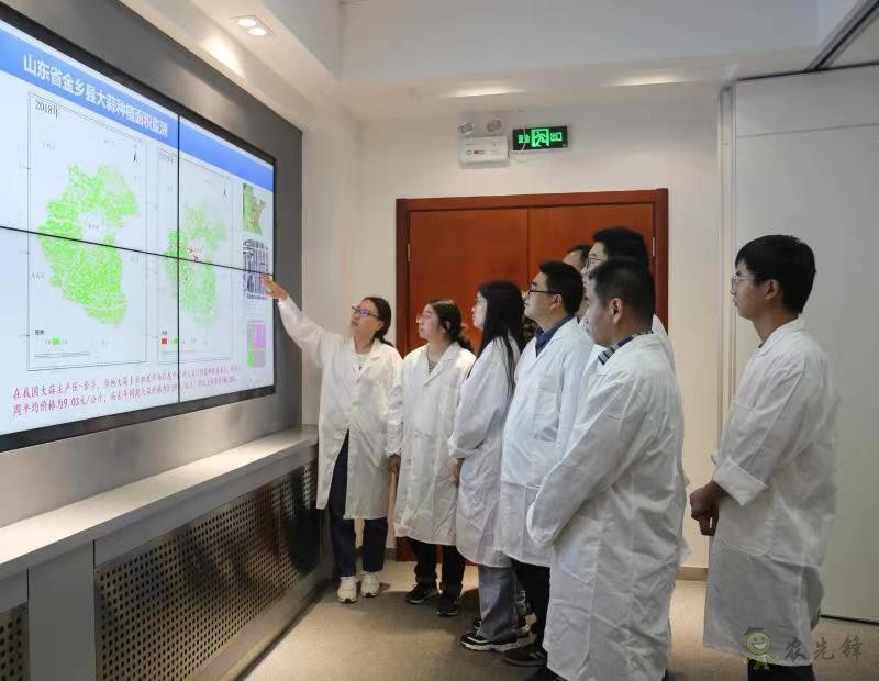 農業遙感團隊科研人員們正在對高分大蒜種植面積遙感監測結果進行數據分析。金云翔 攝